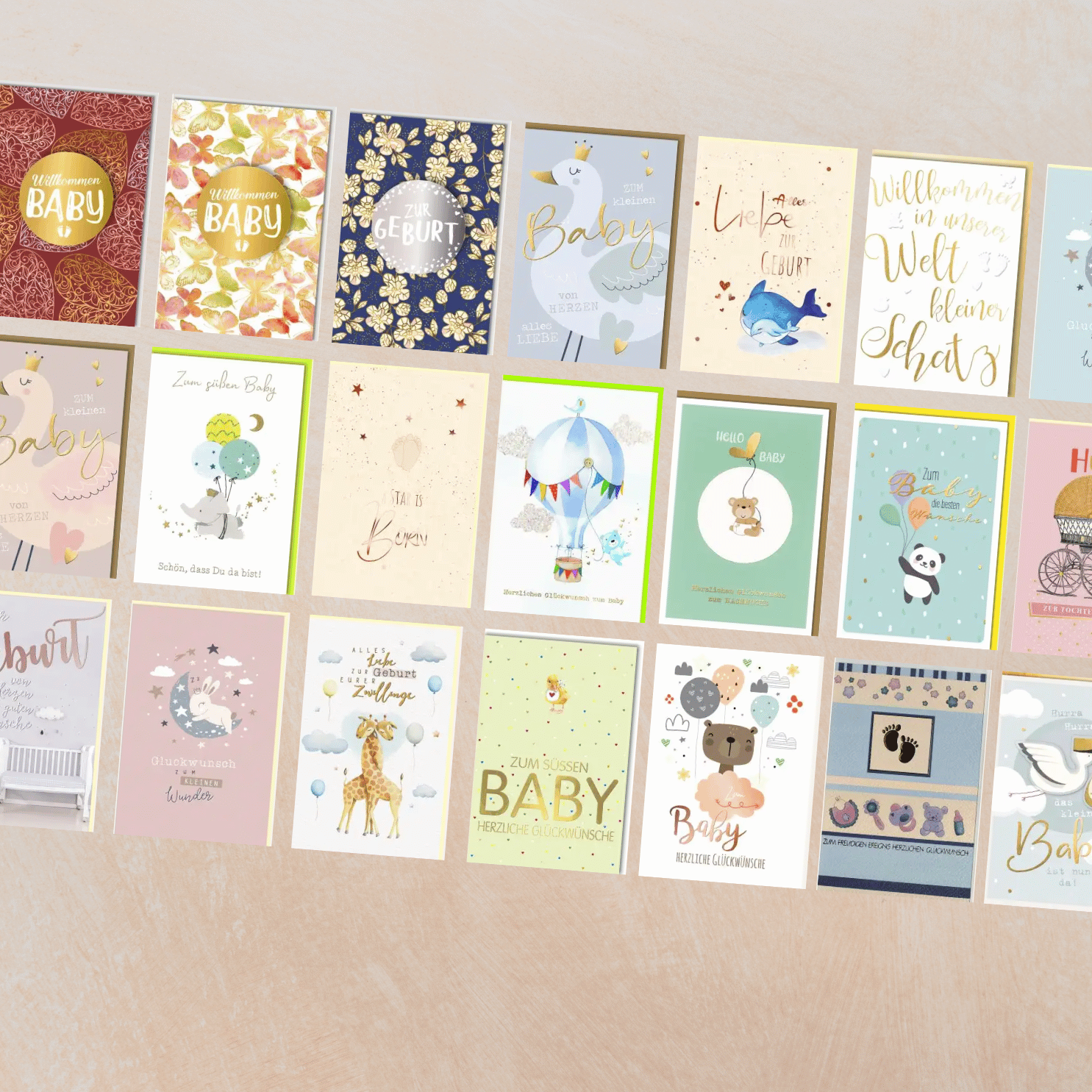 Finde die passende Karte zur Geburt eines Babys. Durchstöbere unsere verschiedenen Kategorien.