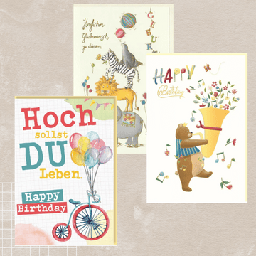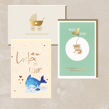Zusätzlich zu unseren klassischen Geburtskarten bieten wir auch Geburtstagskarten für Kinder an, die für zukünftige Geburtstage des Neugeborenen genutzt werden können. Für die Familienmitglieder oder Freunde, die zur Geburt ein besonderes Geschenk überreichen möchten, sind unsere Postkarten Freundschaft und Postkarten Liebe eine schöne Ergänzung, um die Glückwünsche noch persönlicher zu gestalten.