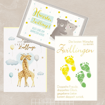 Karten zur Geburt Zwillinge