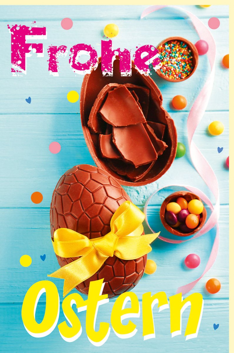 Osterkarte "Frohe Ostern" - Bunte Eier & Frühlingsfest Motive, Ostergrüße Doppelkarte mit Osterdekoration, Feiertagsgruß fürs Osterfest
