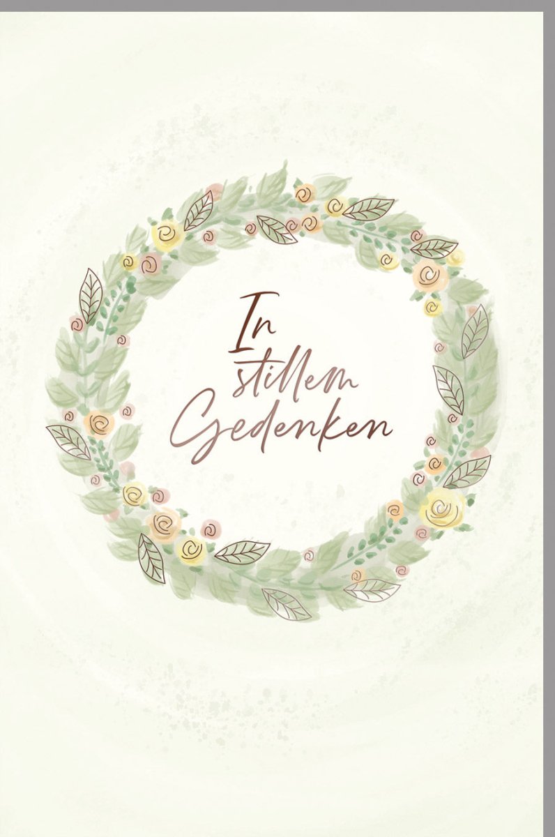 Kondolenzkarte mit Metallicfolie & Blindprägung - Blätterkranz Gedenkkarte für stilvolle Trauerfeier, schlichte Eleganz & würdevolle Abschiednahme, pietätvolles Design für mitfühlende Anteilnahme
