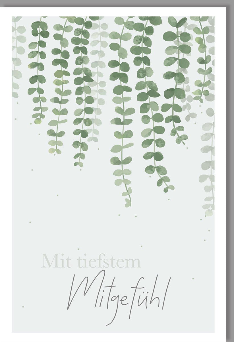 Trauerkarte für Beileid & Anteilnahme - Elegante Kondolenzkarte mit Blätterranken, Naturdesign in Grün, Stilvolle Gedenkkarte zum Abschied, Schlichte Trauerfall-Karte für Angehörige und Freunde