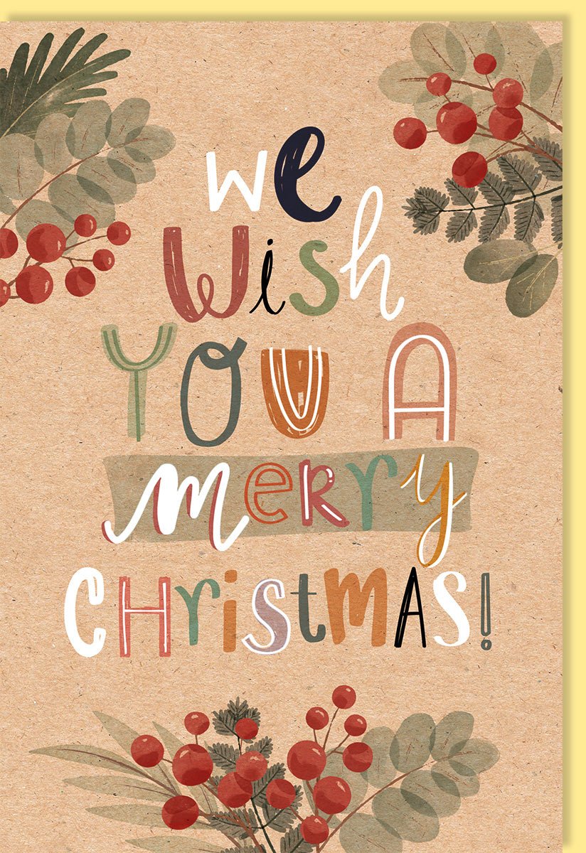 Weihnachtskarte mit Stechpalmen & Beeren – Festlicher Naturkarton, , Vintage Handschrift-Design
