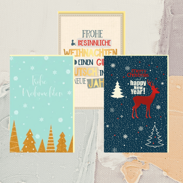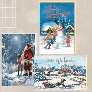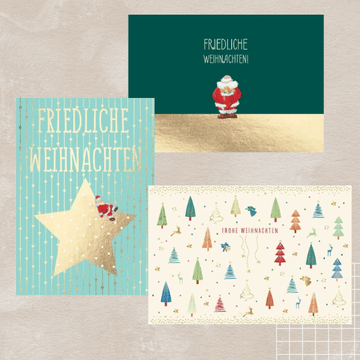 Weihnachten ist die Zeit des Gebens und der Besinnlichkeit, und Weihnachtskarten gehören dabei zu den schönsten Traditionen. Mit einer Weihnachtskarte sendest du liebe Grüße und schenkst Familie, Freunden oder Kollegen ein Stück festlicher Freude. In unserem Sortiment findest du eine große Auswahl an Weihnachtskarten in unterschiedlichen Stilen, die für jedes Bedürfnis den passenden Gruß bereithalten. Ob klassisch, traditionell, nostalgisch oder geschäftlich – unsere Weihnachtskarten sorgen mit ihren stilvollen Designs dafür, dass deine Botschaft Eindruck hinterlässt. Eine handgeschriebene Weihnachtskarte zeigt Wertschätzung und schafft eine besondere Verbindung, die gerade in der Weihnachtszeit geschätzt wird.