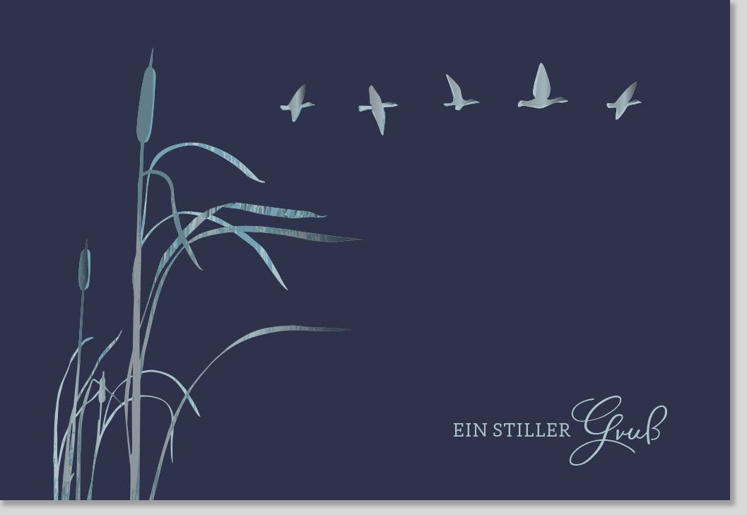 Kondolenzkarte - Gutsch Glanzstücke "Ein stiller Gruß" mit Schilf & Vögeln, stilvoll schlicht, dunkelblau mit weißem Druck, für Anteilnahme & Abschied, Trauerfall & Beerdigung, Gedenken mit Pietät für Erwachsene & Senioren
